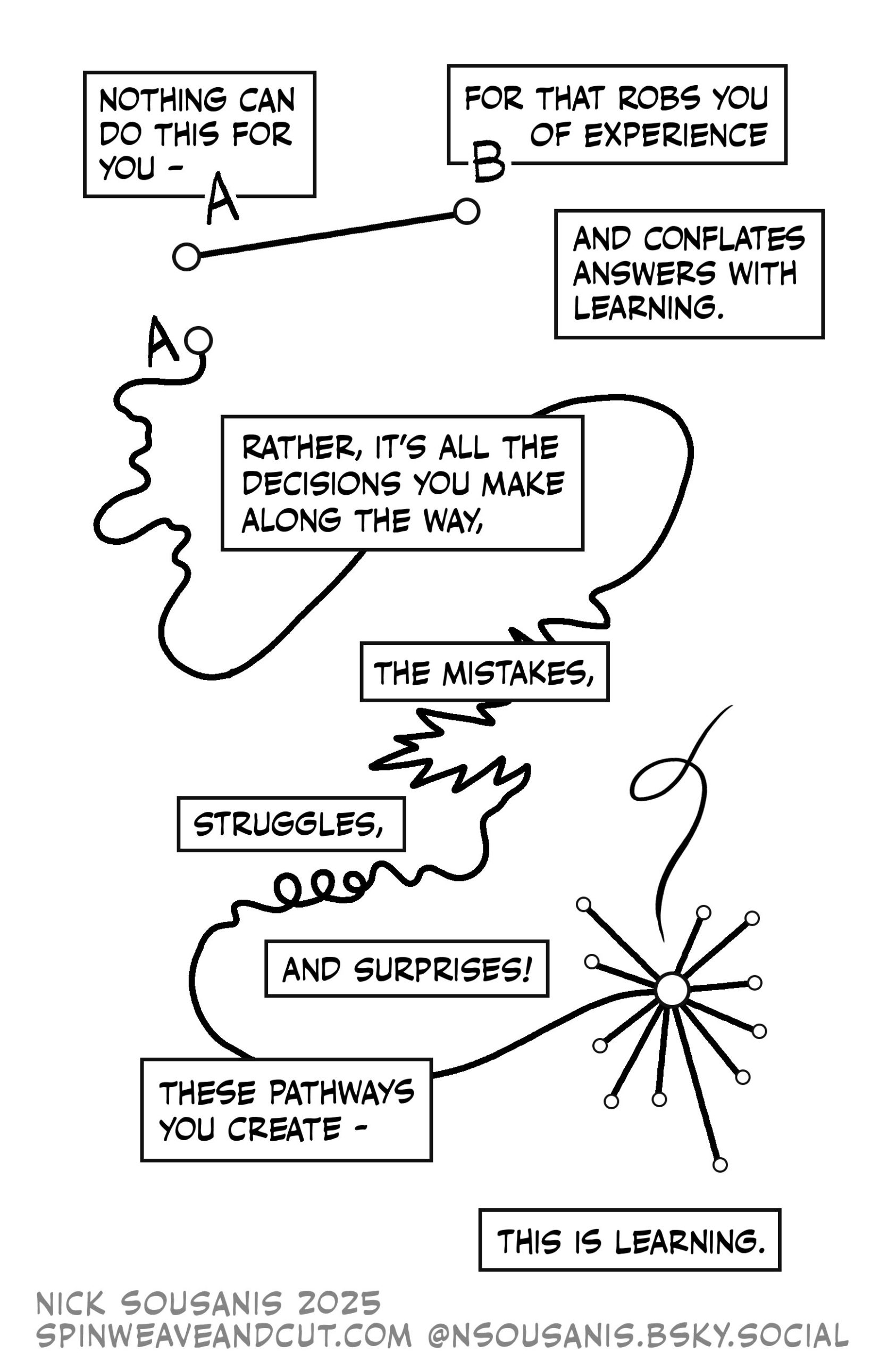 This image, from https://spinweaveandcut.com/fall-2025-syllabi/, was created by Nick Sousanis and used by permission.